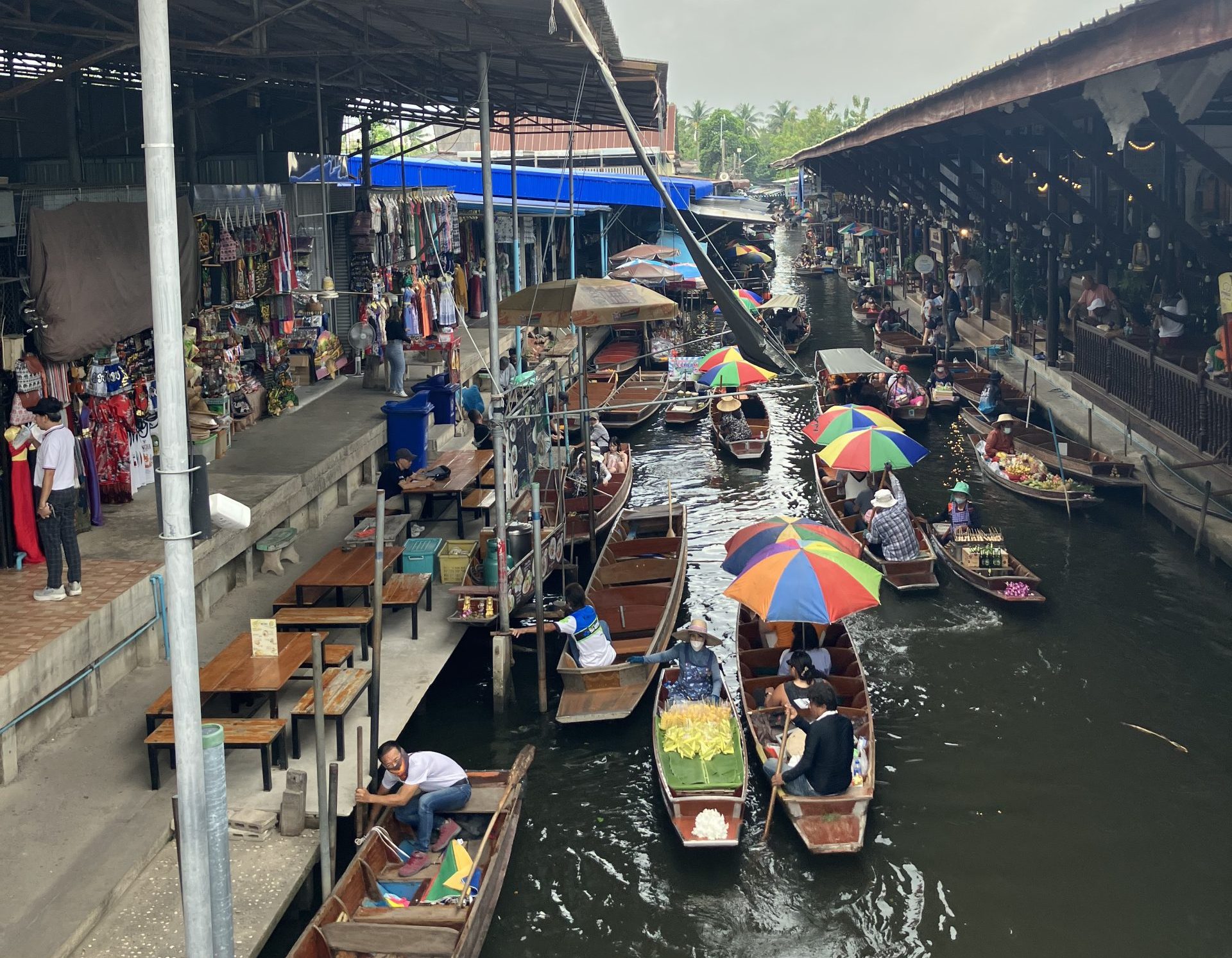 「水上マーケット・象乗り体験」のツアーでは、ロングテールボートで運河を進み、水上マーケットでは昔ながらの商い風景を堪能。現地での暮らしや文化に触れる貴重な時間となりました。